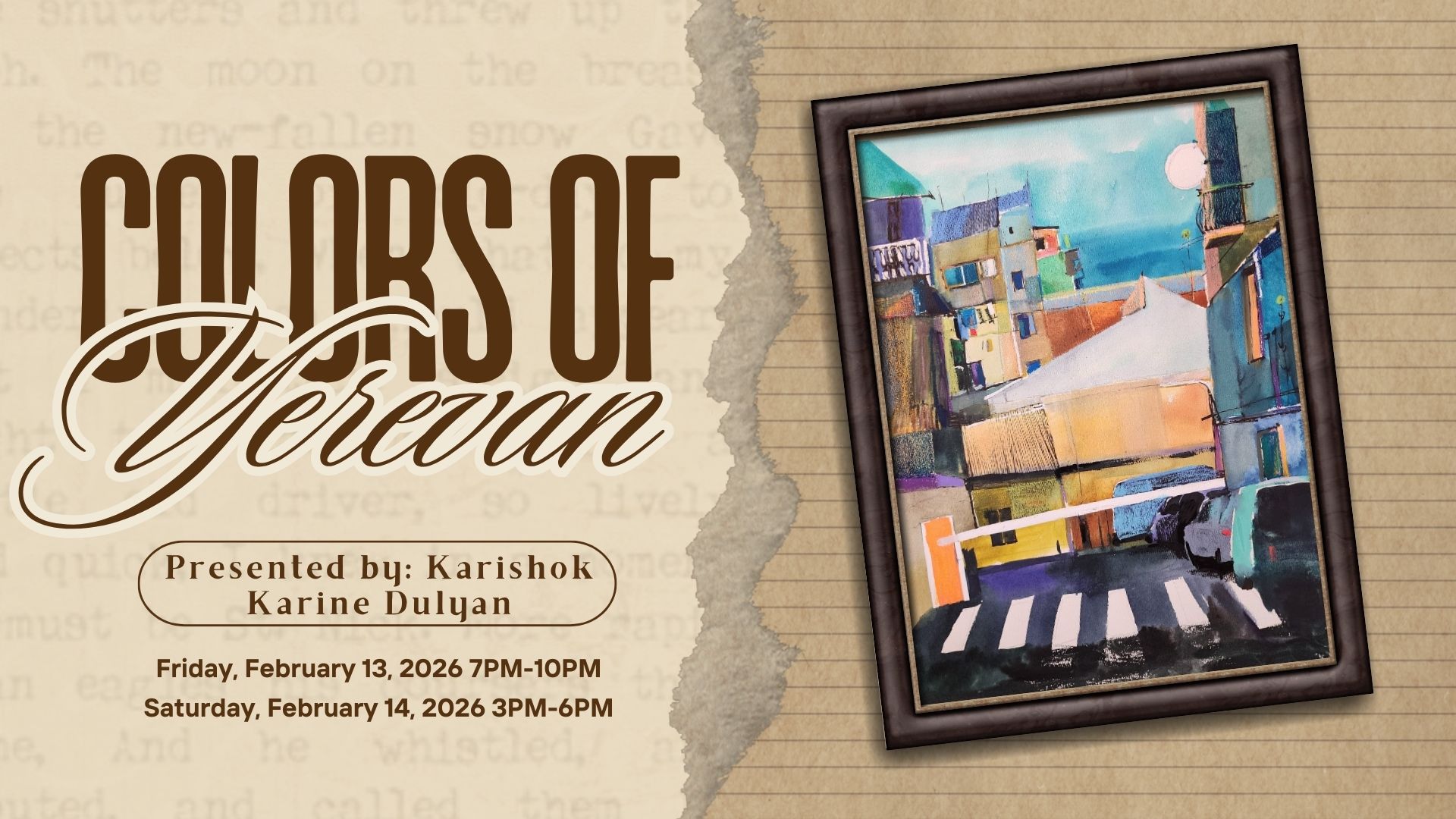Join us at Armenian Arts for Karine Vardanyan and You, On the Other Side—a unique exhibition exploring the delicate interplay between nature and abstraction. Karine Vardanyan brings a fresh perspective to contemporary art through her striking abstract collages made with sea shells, each piece capturing emotion, texture, and memory from both land and sea. Day/Time: […]
